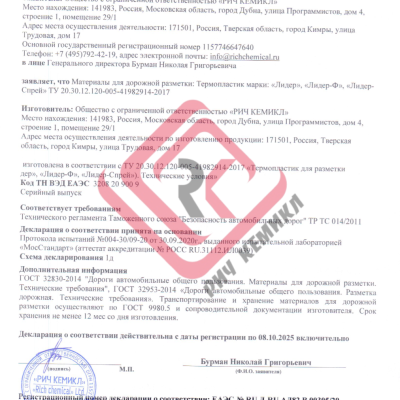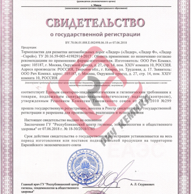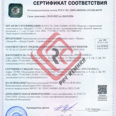 Дорожный термопластик "Лидер" ТУ 20.30.12.120-005-41982914-2017 предназначен для нанесения стойкой дорожной разметки на асфальтированное полотно, автомобильные дороги, магистрали, проезжие части, парковочные места, пешеходные и велосипедные зоны и др.