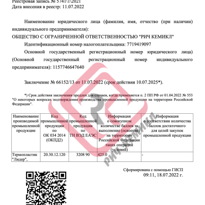 Собственное производство ООО "Рич Кемикл".